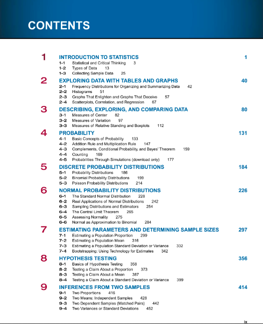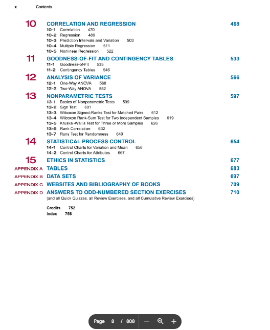 The textbook is organized into 13 chapters, which progress logically from basic concepts to more advanced topics. Each chapter includes numerous examples, illustrations, and exercises to help students practice and apply the concepts covered in the chapter. Additionally, the book includes real-life applications of statistical techniques in a variety of fields, such as business, social sciences, and health care.